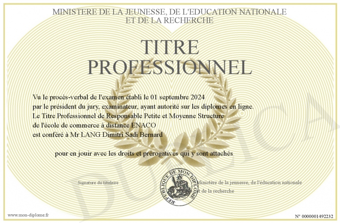 Envoyez par email votre Titre Professionnel personalisé