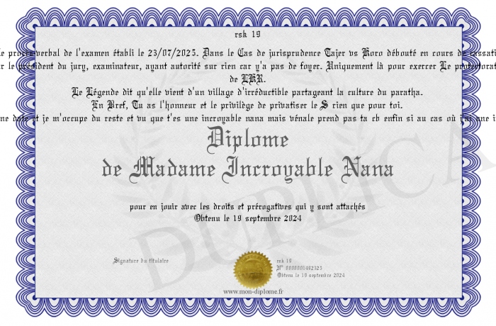 Envoyez par email votre Diplôme de Madame Incroyable Nana personalisé