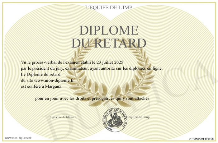 Envoyez par email votre Diplôme du retard personalisé