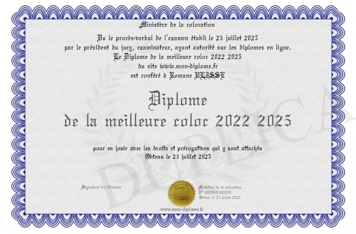 Envoyez par email votre Diplôme de la meilleure coloc 2022 2025 personalisé