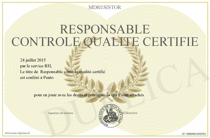 Envoyez par email votre Responsable contrôle qualité certifié personalisé