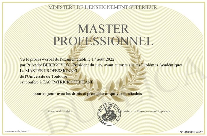 Envoyez par email votre MASTER PROFESSIONNEL personalisé