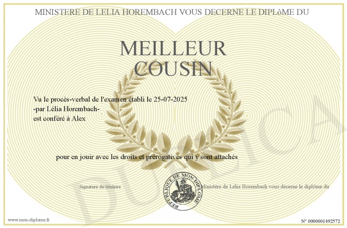 envoyé par le Ministère de Lélia Horembach vous décerne le diplôme du !