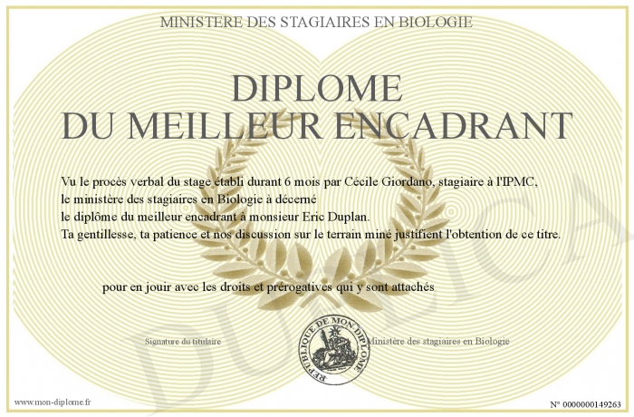 Envoyez par email votre Diplôme du meilleur encadrant personalisé