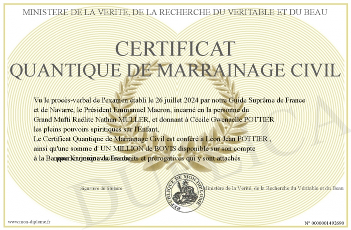 Envoyez par email votre Certificat Quantique de Marrainage Civil personalisé
