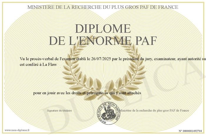 Envoyez par email votre Diplôme de l'énorme PAF personalisé
