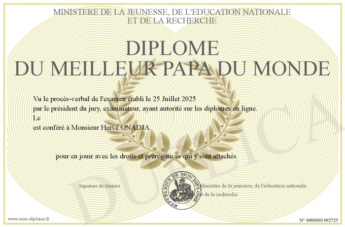 Envoyez par email votre Diplôme du Meilleur PAPA du Monde personalisé