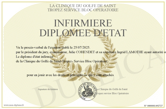 Envoyez par email votre INFIRMIERE DIPLOMEE D'ETAT personalisé
