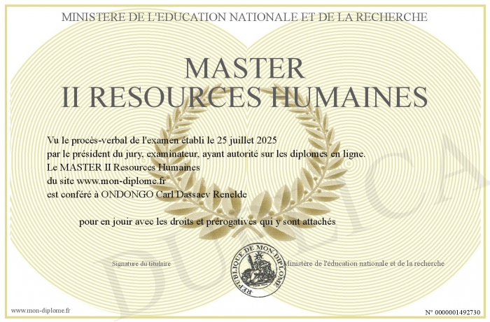 Envoyez par email votre MASTER II Resources Humaines personalisé