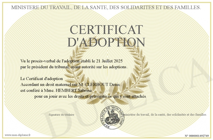 Envoyez par email votre Certificat d'adoption personalisé