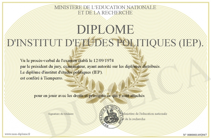 Envoyez par email votre Diplôme d'institut d'études politiques (IEP). personalisé