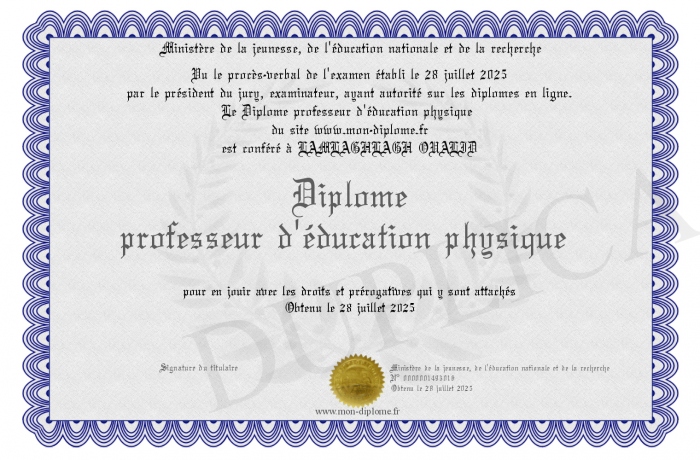 Envoyez par email votre Diplôme professeur d'éducation physique personalisé