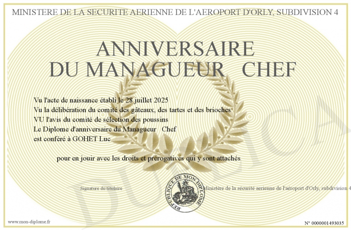 Envoyez par email votre anniversaire du Managueur Chef personalisé