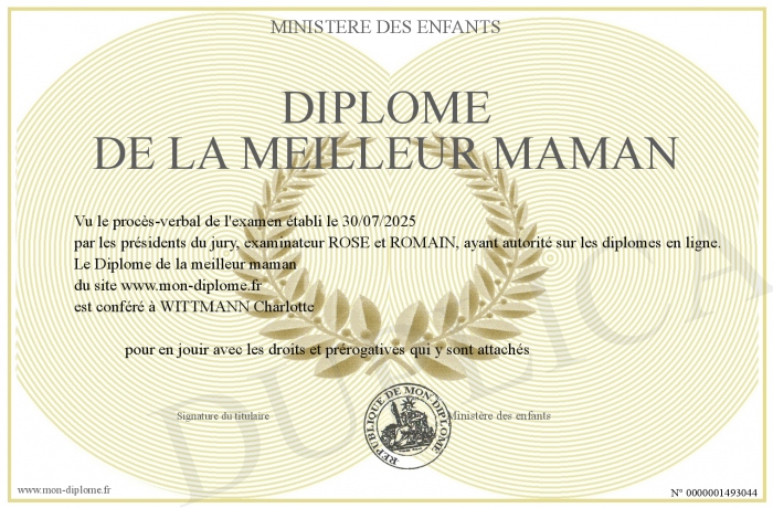 Envoyez par email votre Diplôme de la meilleur maman personalisé