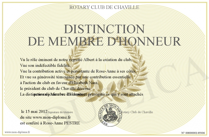 Envoyez par email votre distinction de Membre d'Honneur personalisé