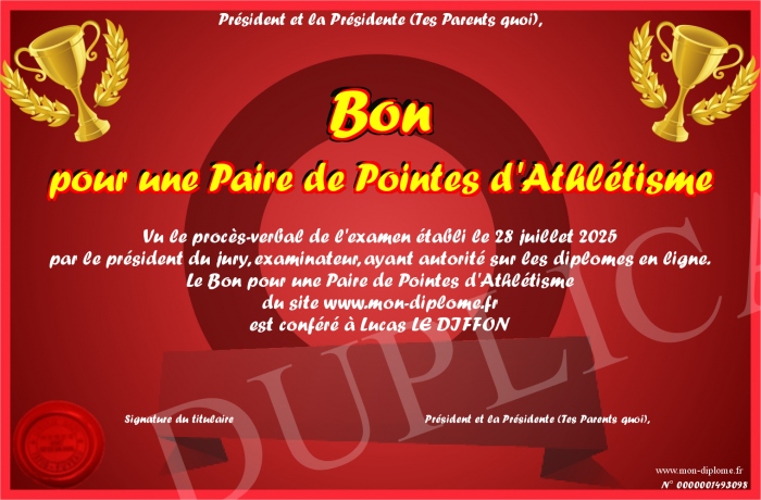 Envoyez par email votre Bon pour une Paire de Pointes d'Athlétisme personalisé
