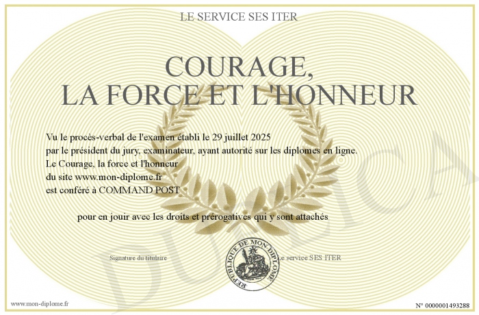 Envoyez par email votre Courage, la force et l'honneur personalisé