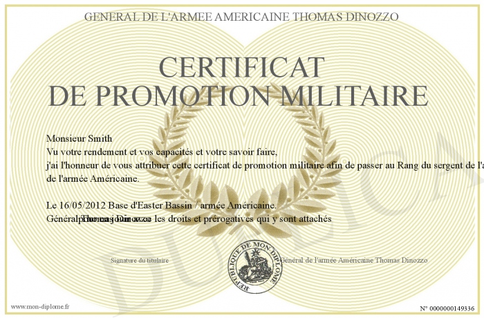 Envoyez par email votre Certificat de promotion militaire personalisé