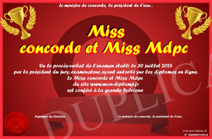 Envoyez par email votre Miss concorde et Miss Mdpc personalisé
