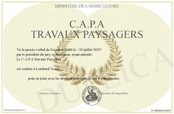 Envoyez par email votre C.A.P.A Travaux Paysagers personalisé