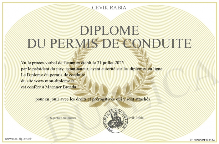 Envoyez par email votre Diplôme du permis de conduite personalisé