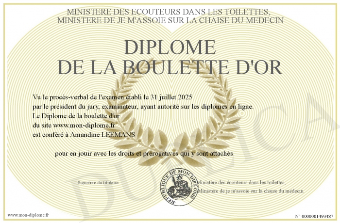 Envoyez par email votre Diplôme de la boulette d'or personalisé