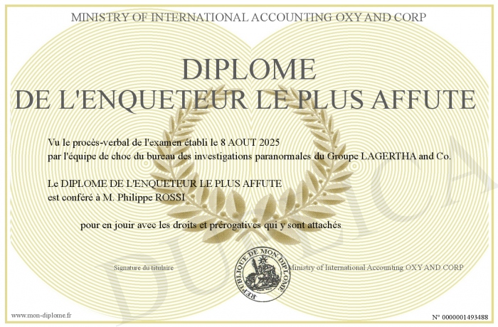 Envoyez par email votre Diplôme de l'enqueteur le plus affute personalisé