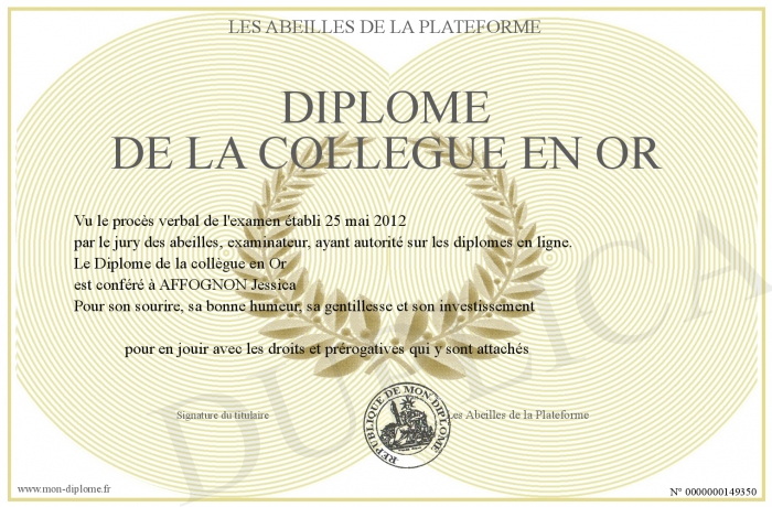 Envoyez par email votre Diplôme de la collègue en Or personalisé