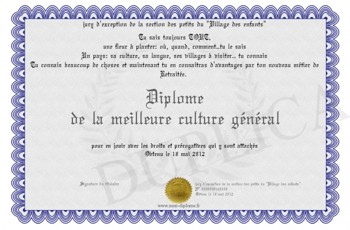 Envoyez par email votre Diplôme de la meilleure culture général personalisé