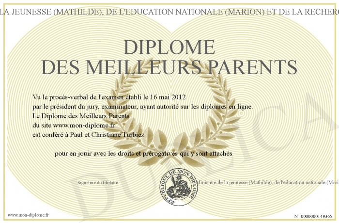 Envoyez par email votre Diplôme des Meilleurs Parents personalisé