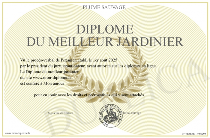 Envoyez par email votre Diplôme du meilleur jardinier personalisé