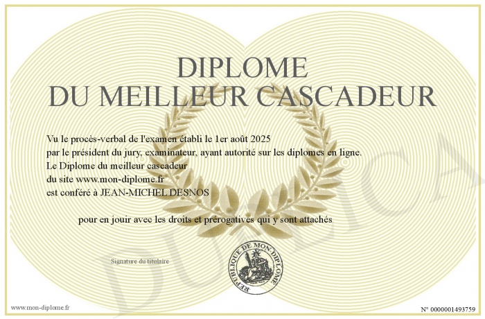 Envoyez par email votre Diplôme du meilleur cascadeur personalisé