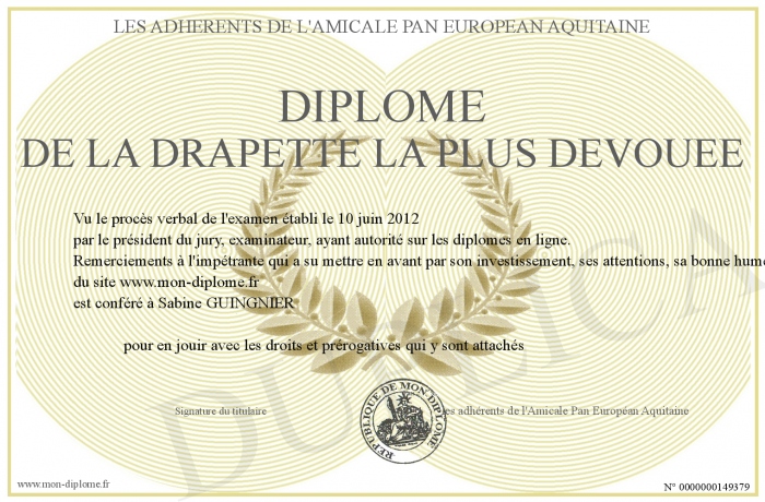 Envoyez par email votre diplôme de la DRAPETTE la plus dévouée personalisé