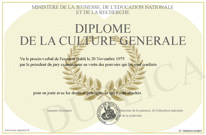 Envoyez par email votre Diplôme de la culture générale personalisé