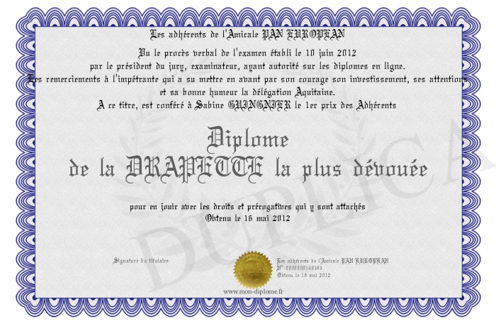 Envoyez par email votre Diplôme de la DRAPETTE la plus dévouée personalisé