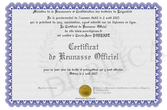 Envoyez par email votre Certificat de Keunasse Officiel personalisé