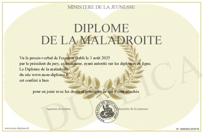 Envoyez par email votre Diplôme de la maladroite personalisé