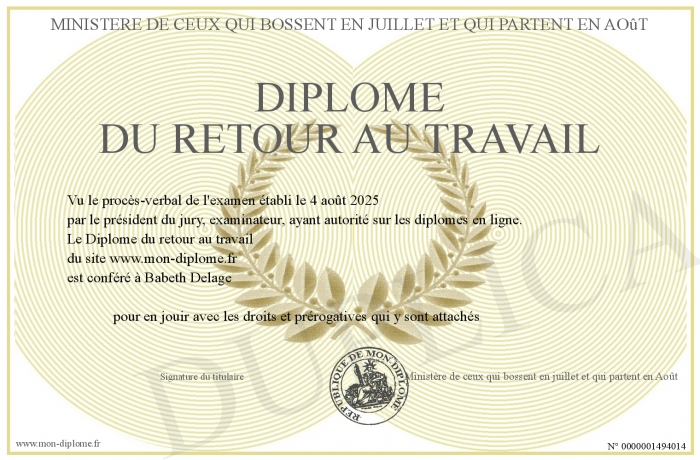 Envoyez par email votre Diplôme du retour au travail personalisé