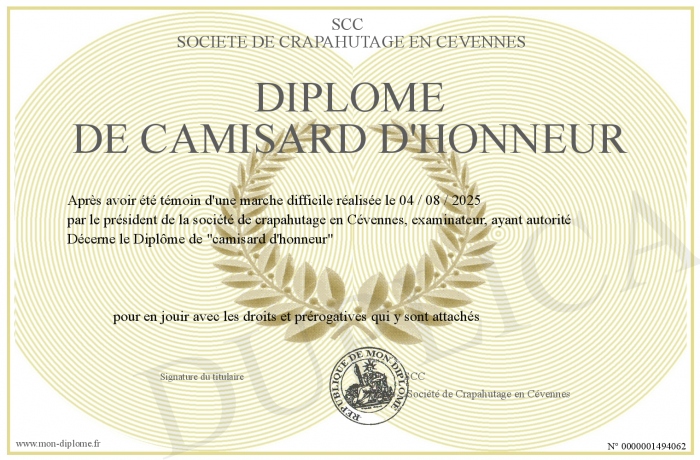 Envoyez par email votre Diplôme de camisard d'honneur personalisé