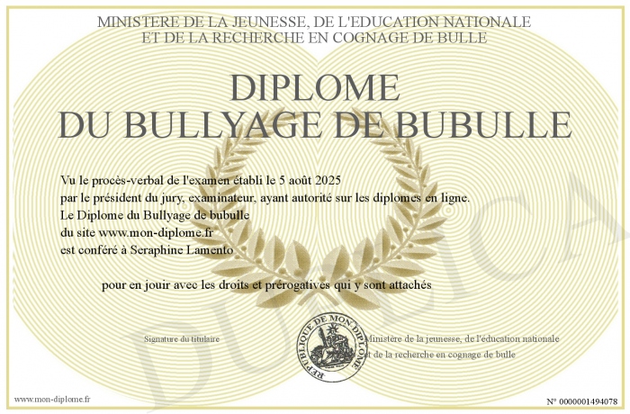 Envoyez par email votre Diplôme du Bullyage de bubulle personalisé