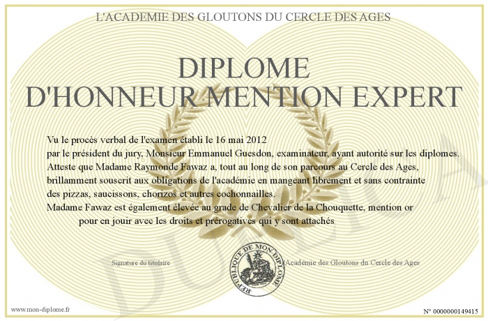 Envoyez par email votre Diplôme d'honneur mention Expert personalisé