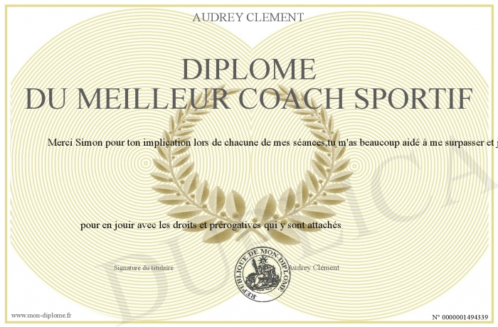 Envoyez par email votre Diplôme du meilleur coach sportif personalisé