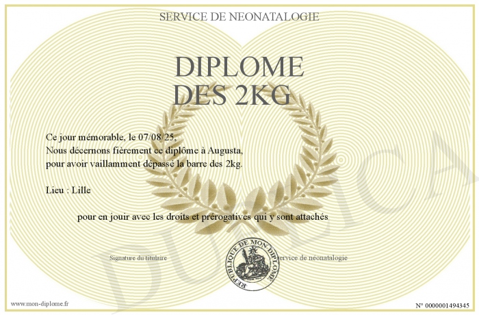 Envoyez par email votre Diplôme des 2kg personalisé