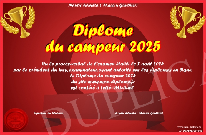 Envoyez par email votre Diplôme du campeur 2025 personalisé