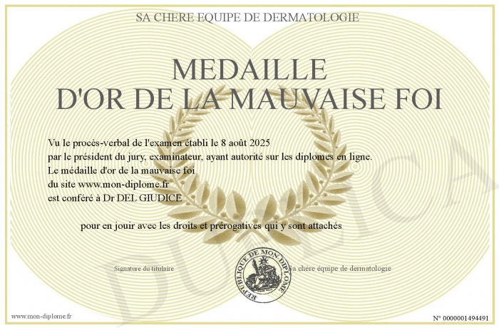 Envoyez par email votre médaille d'or de la mauvaise foi personalisé