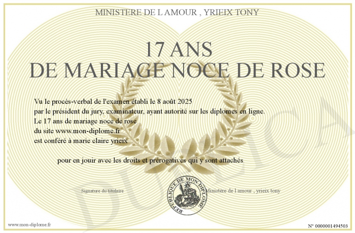 Envoyez par email votre 17 ans de mariage noce de rose personalisé