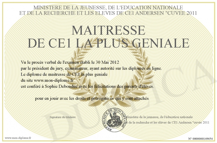Envoyez par email votre Maitresse de CE1 la plus GENIALE personalisé