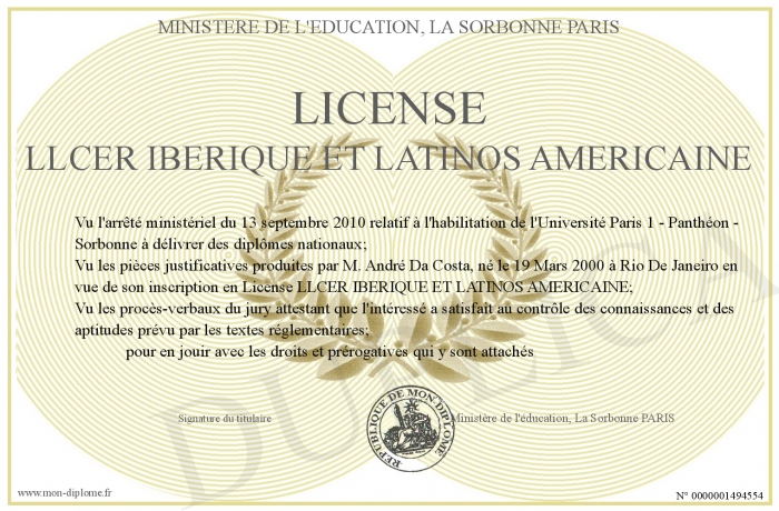 Envoyez par email votre LICENSE LLCER IBERIQUE ET LATINOS AMERICAINE personalisé