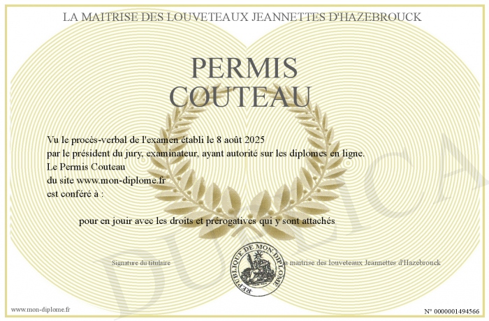 Envoyez par email votre Permis Couteau personalisé