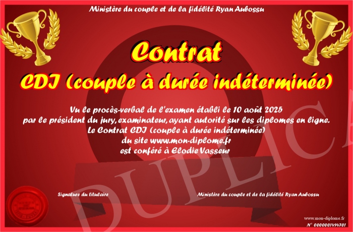 Envoyez par email votre Contrat CDI (couple à durée indéterminée) personalisé